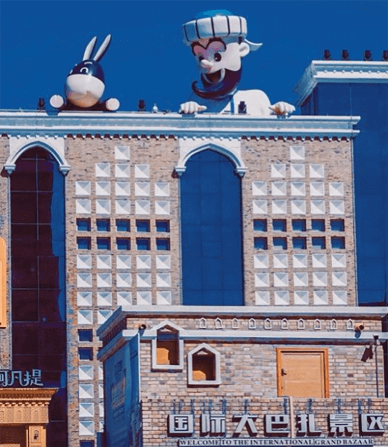 巴扎是維吾爾語,意為集市、農(nóng)貿(mào)市場,它遍布新疆城鄉(xiāng)。新疆國際大巴扎于2004年入選烏魯木齊市“十佳建筑”,具有濃郁的伊斯蘭建筑風(fēng)格,在涵蓋了建筑的功能性和時代感的基礎(chǔ)上,重現(xiàn)了古絲綢之路的繁華,集中體現(xiàn)了濃郁西域民族特色和地域文化,是“新疆之窗”、“中亞之窗”和“世界之窗”。