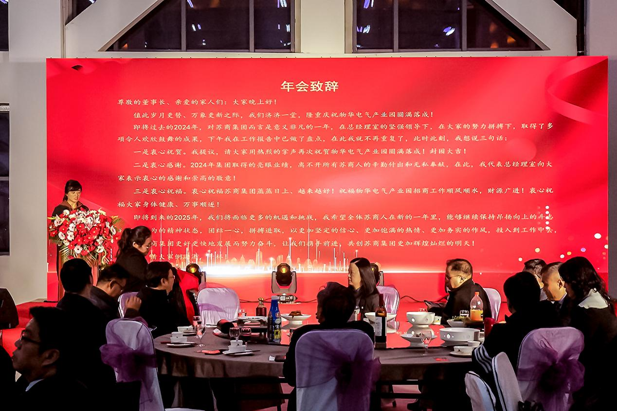 集團副總經理潘麗女士發(fā)表了熱情洋溢的祝酒致辭,衷心感謝全體員工在過去一年里的辛勤付出,并給大家敬酒!祝福大家在新的一年里蛇序呈祥、萬事順遂!祝福南京蘇商集團創(chuàng)造出更加美好的新未來!