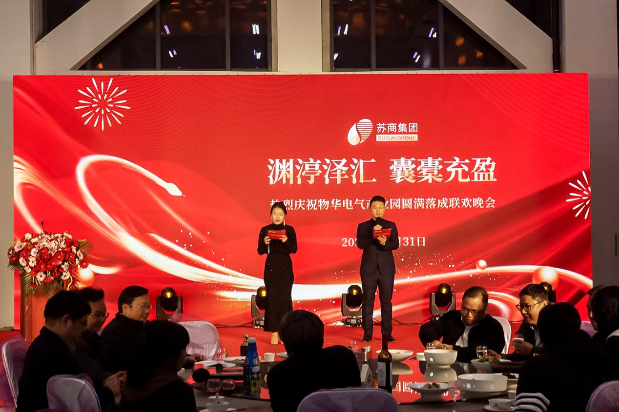 2024年12月31日,南京蘇商集團隆重舉行“淵渟澤匯 囊橐充盈”物華電氣產業(yè)園圓滿落成慶祝活動,集團本部全體員工和裝備制造事業(yè)部、商業(yè)管理事業(yè)部高管及員工代表150余人參加活動。慶?;顒訌南挛?4:00開始,一直延續(xù)到晚上20:30,熱烈、喜慶、溫馨、和諧。