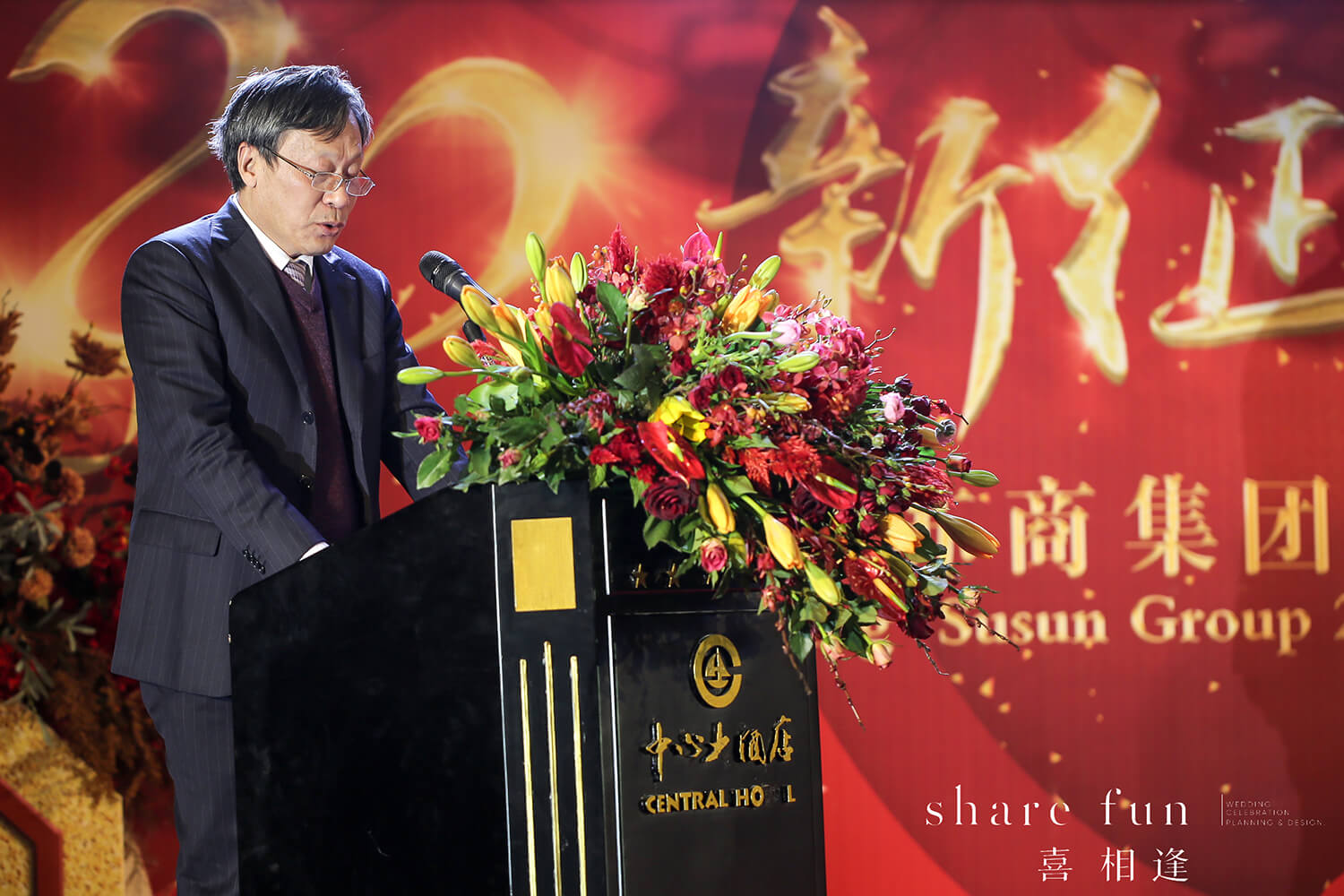 蘇商集團(tuán)董事長、總經(jīng)理陳家俊先生在晚會上發(fā)表精彩致辭。對嘉賓的光臨表示熱烈歡迎,對嘉賓單位和個(gè)人一直以來的關(guān)心和支持表示衷心感謝!他和大家分享了蘇商集團(tuán)20年成長的心得與體會,介紹了企業(yè)理念和未來發(fā)展思路,并祝大家新年快樂,身體健康,萬事如意!